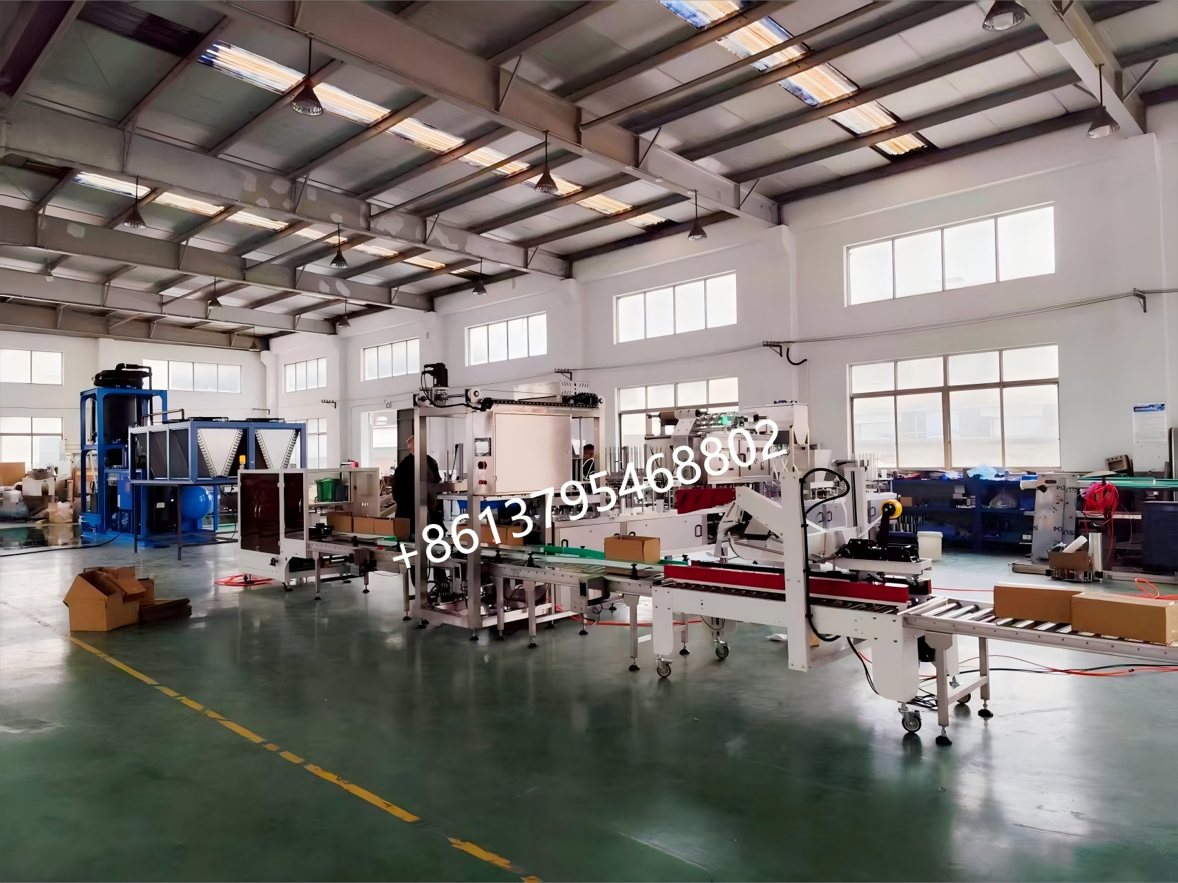此可可雞尾酒冰杯填充包裝生產線包括10T管冰機、6000杯/小時冰杯填充封蓋機和自動紙箱填充包裝系統!